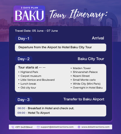 Experience the charm of Baku with a perfectly curated 3-day getaway that includes everything you need for a smooth and stylish trip.